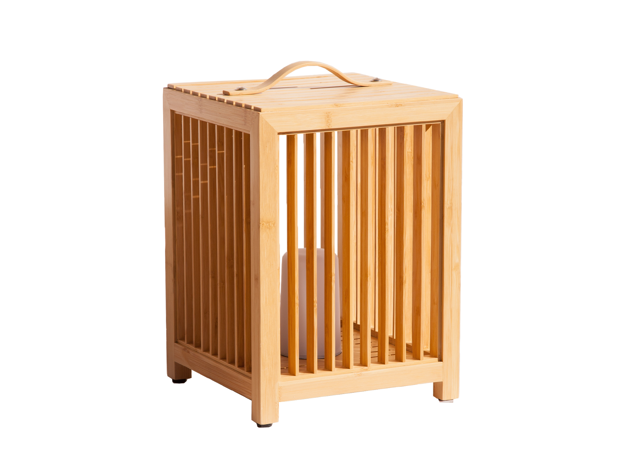 Lampe portable en bambou pour la table ou une ballade nocturne au jardin.