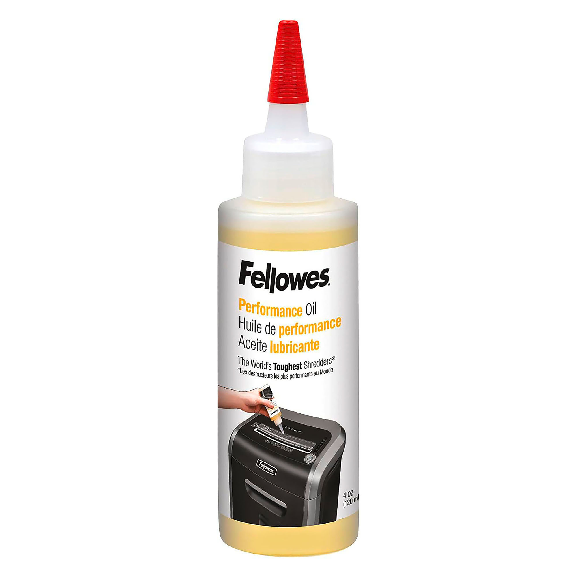 The 120 ml bottle is made from 100% recycled materials, underscoring Fellowes®' commitment to eco-friendliness. Choose Fellowes® Lubricant Oil to effectively maintain your shredder and ensure flawless results with every use.