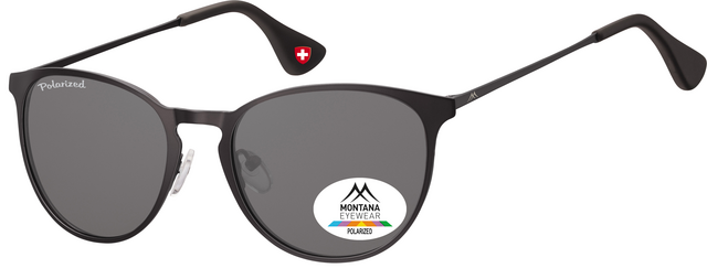 Detailled descriptionLunettes de soleil branchées Montana en noir mat avec des verres ronds et branches en métal Verres fumés polarisés Largeur des verres : 54mm, largeur du pont : 19mm Etui souple inclus Convient aux hommes et aux femmes.