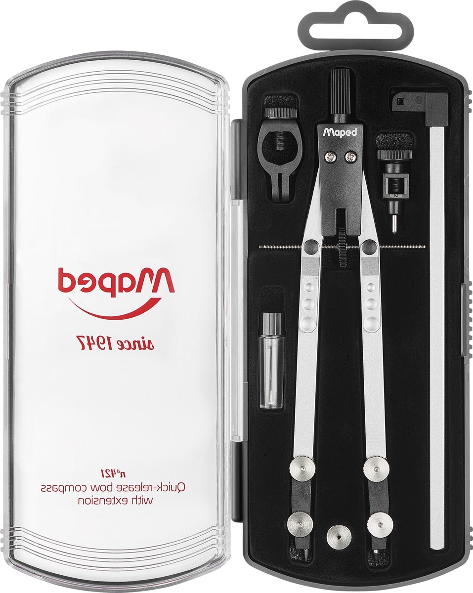 Detailled descriptionDiamètre maxi du cercle: 300 mm, longueur du compas: 160 mm, axe central, dans un boîtier résistant aux chocs Contenu: dispositif de réglage rapide, adaptateur universel, tige d'extension, boîte à stylos et vis de rechange