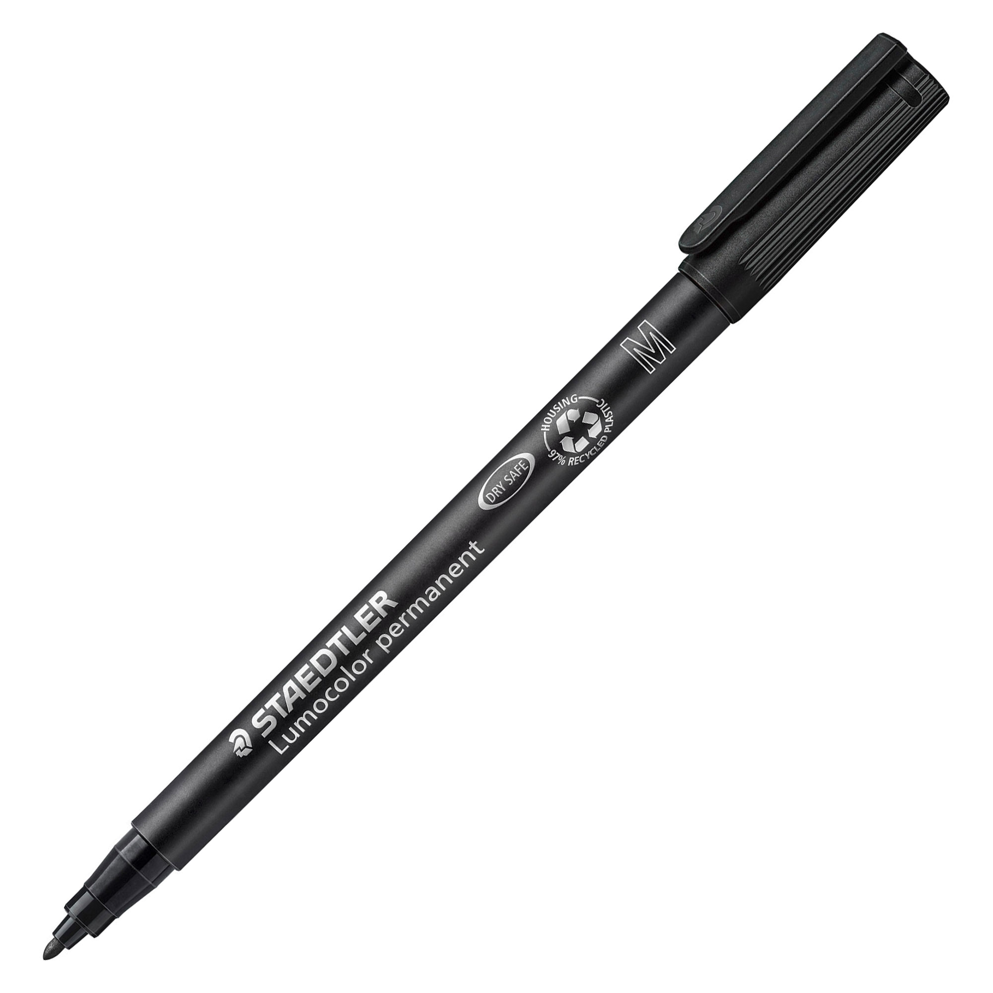 The STAEDTLER Lumocolor universal marker pen will be your ally for writing, drawing, or marking on most surfaces: paper, cardboard, glass, metal, plastic, overhead transparencies, stone, and much more. Its versatility makes it an essential tool for professionals, students, and creatives. Ergonomics and precision are the two words that characterize it: with its medium bullet tip of 1mm, this marker pen offers a precise line, perfect for various applications, from writing to technical drawings. And its permanent ink at the cutting edge of innovation has many advantages: