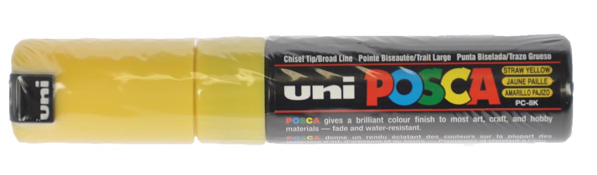 Avec sa pointe large biseautéede 8mm, le PC-8K permet non seulement de tracer des courbes nettes avec un effet graphique de biseau, mais aussi de colorer de vastes surfaces. Disponible dans une vaste gamme gamme de couleurs, il est parfait pour réaliser des grands aplats, des marquages de toutes sortes et bien sûr des créations et des lettrages STREET ART. . Application : papier, plastique, verre, textile, bois, pierre, porcelaine,… Parfait pour créer des motifs uniques, à la fois pour l'intérieur et l'extérieur. L'encre pigmentaire est à base d'eau et est inodore. * Convient à tous les supports. * Haute résistance aux UV. * Couleurs opaques. * Lavable * Miscible * Aquarellable * Superposable. * Couleur : jaune paille.