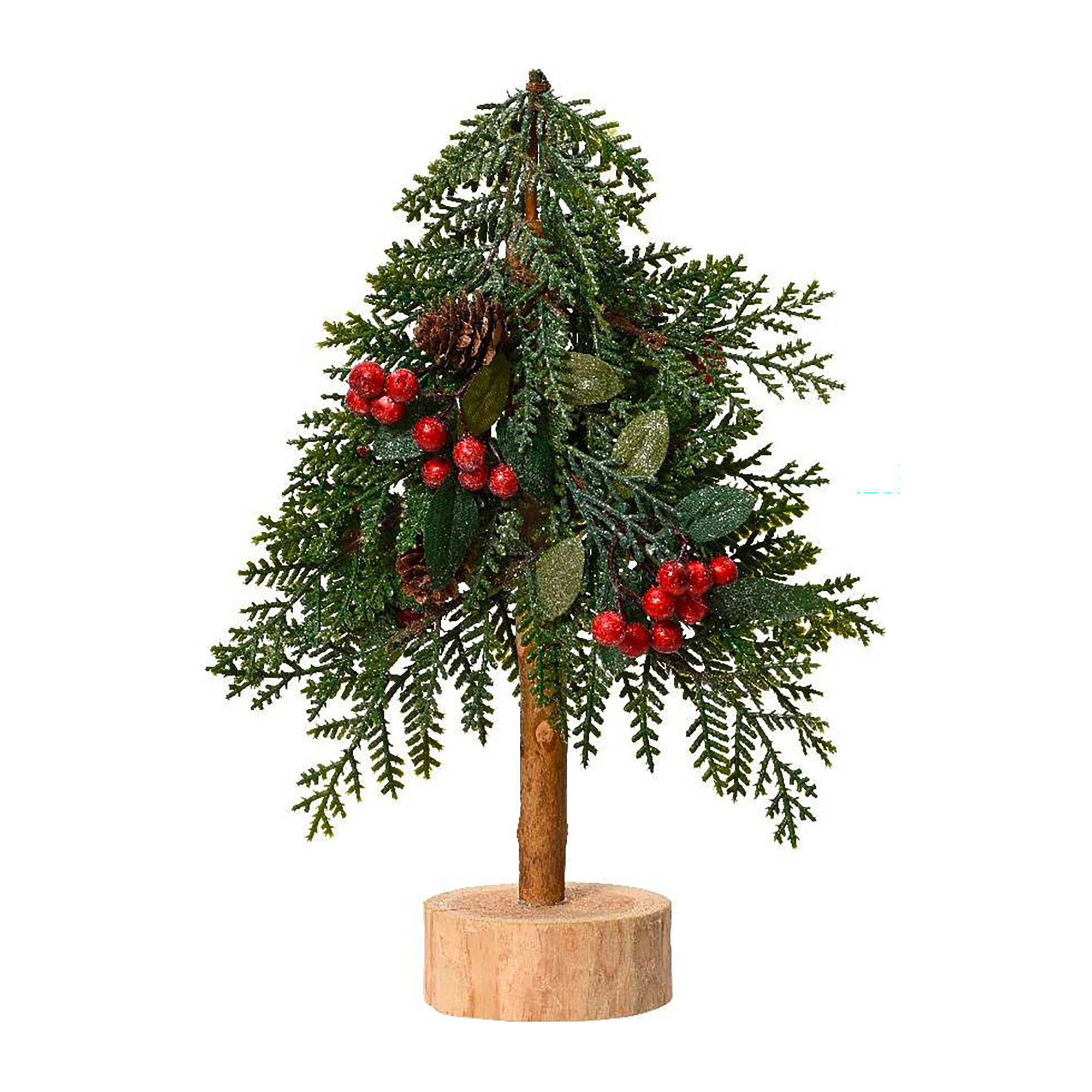 Detailled descriptionMini glittery Christmas tree with red berriesA perfect glittery effect for the end-of-year celebrationsRed berries to add a touch of colorThe tree sits on a wooden base with a diameter of 8 cm and a height of 3 cmFor indoor use onlyDecorative object: keep out of reach of children