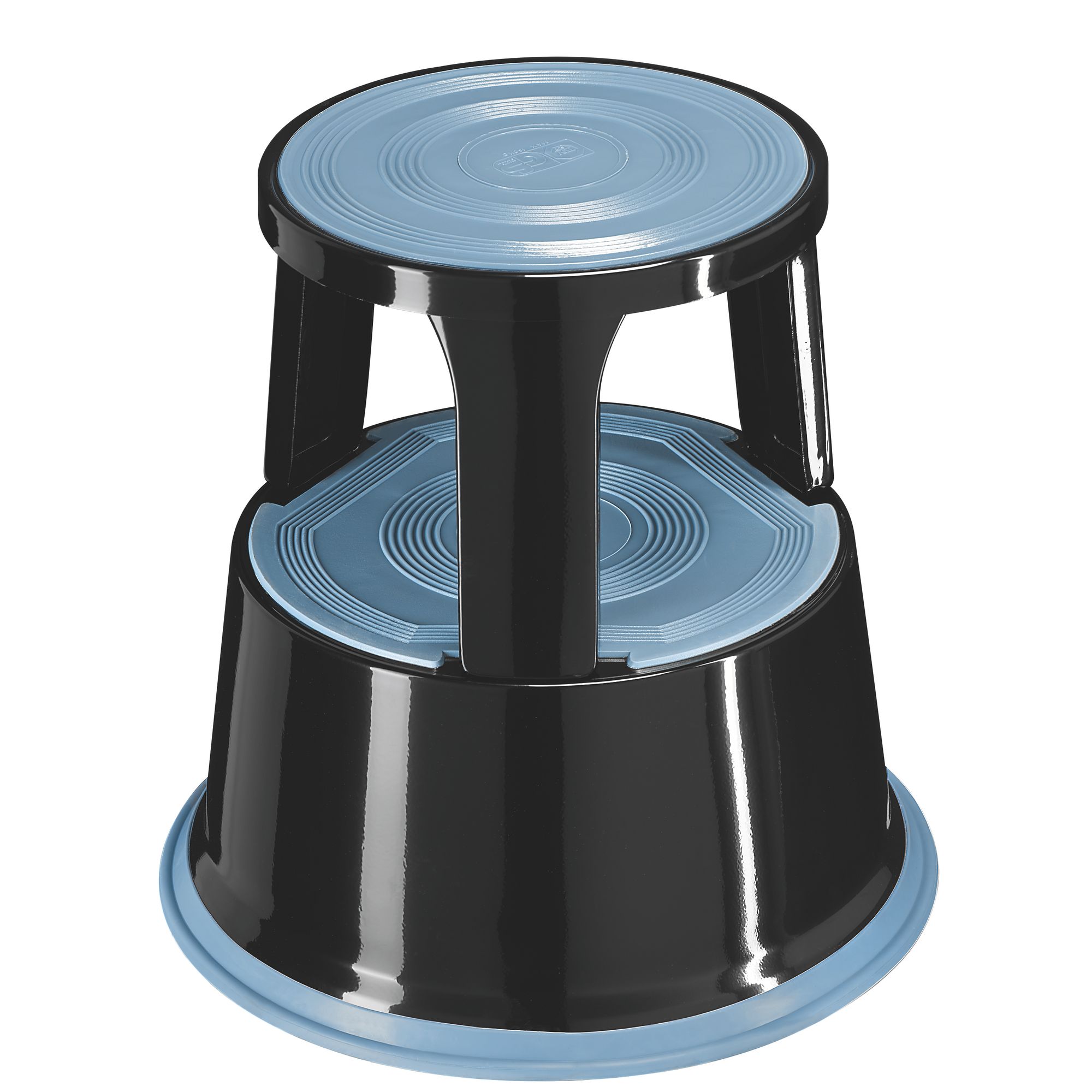 Supports up to 150 kg. You can rise up to 42 cm in all safety. It is stabile on the ground, from the moment you put your feet on it. The steps are covered with black non skid rubber. 3 retractable wheels. In lacquered metal. Dimensions: H 42, Ø 40,5 cm. Weight 4 kg.