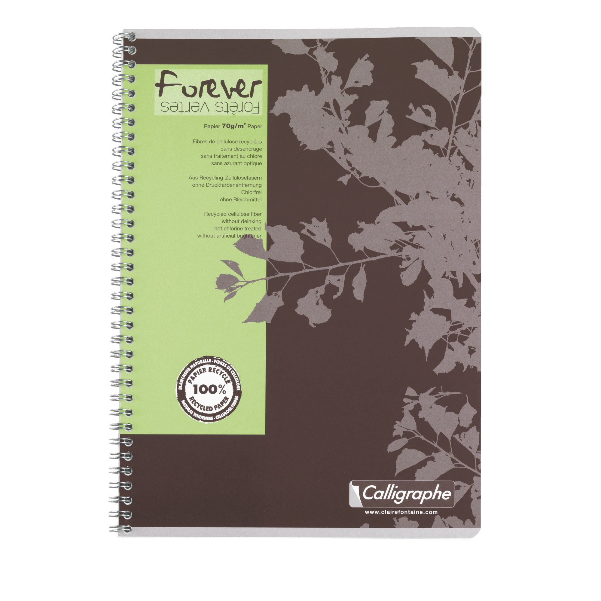 Detailled descriptionPaper 70 g 100% recycled, with natural whiteness. Without ink remover, chlore treatment nor intervention of an optical whitener. Checked 5 x 5. Stitched binding. Size 21 cm x 29,7 cm, 100 pages.