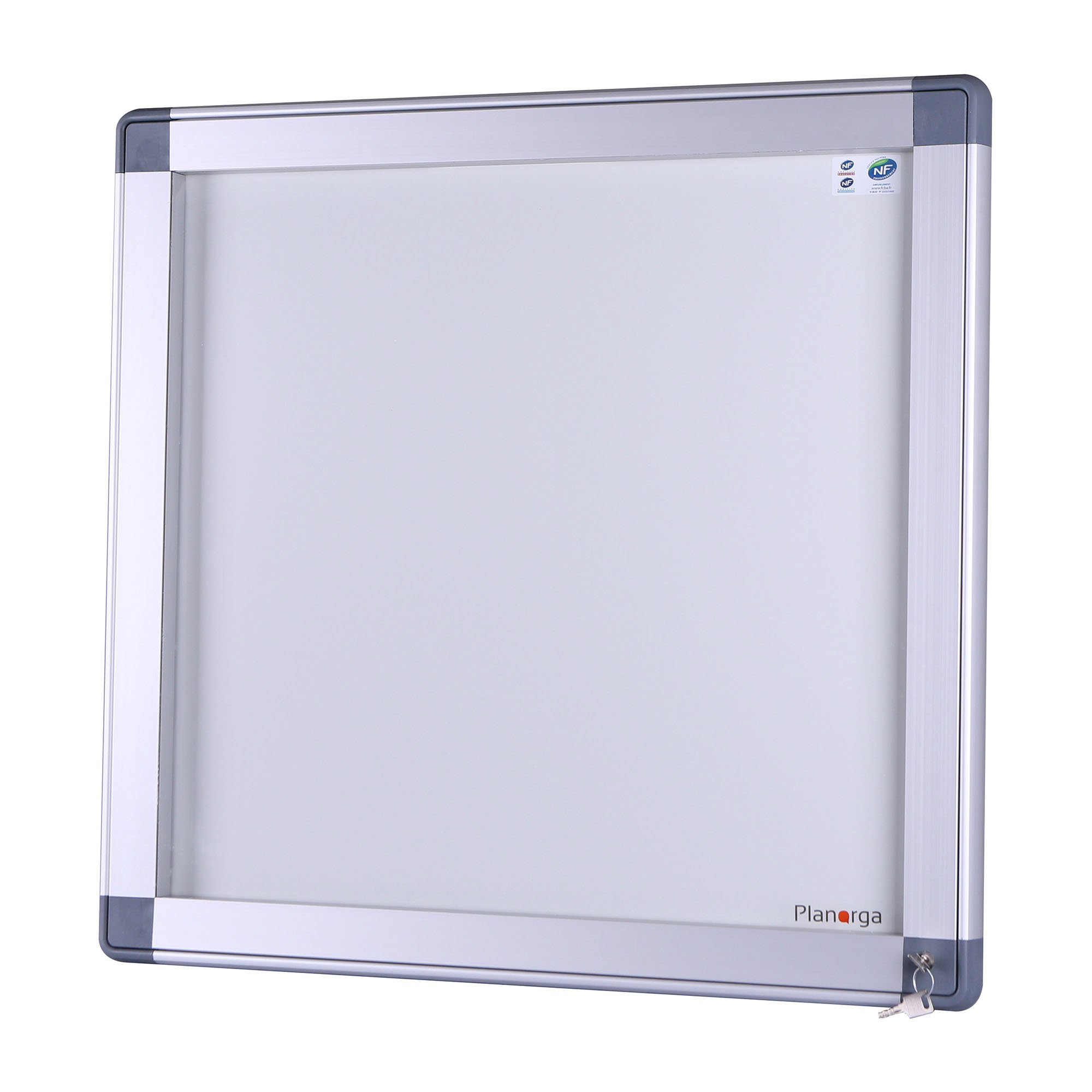 This display case combines aesthetics, durability, and resistance, allowing you to display your announcements or advertisements with peace of mind without altering your outdoor space. The hinged door has a tempered glass glazing for added safety in case of glass breakage. Certified display case for public facilities, environmental standards, and educational settings.