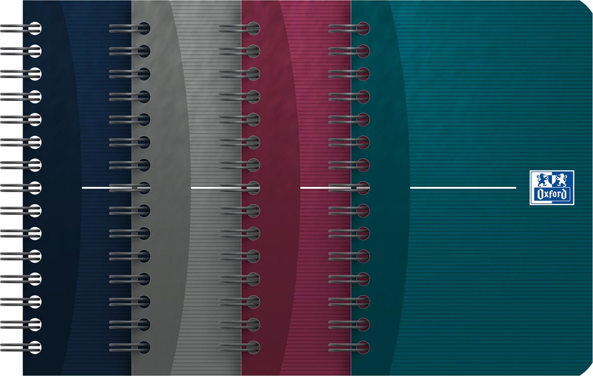 Ft 9 x 14 cm. Papier de 90 g/m². Papier Optik: imperméable à l'encre, même en écrivant avec un stylo plume. 180 pages (90 feuilles). Quadrillé 5 mm. A reliure spirale. Couverture en carte pelliculée résistante. Couleurs assorties: aubergine (Aubergine), vert paon (Peacock Green) blue marine (Navy Blue), gris (Gray) Sélection couleur impossible. EU Ecolabel