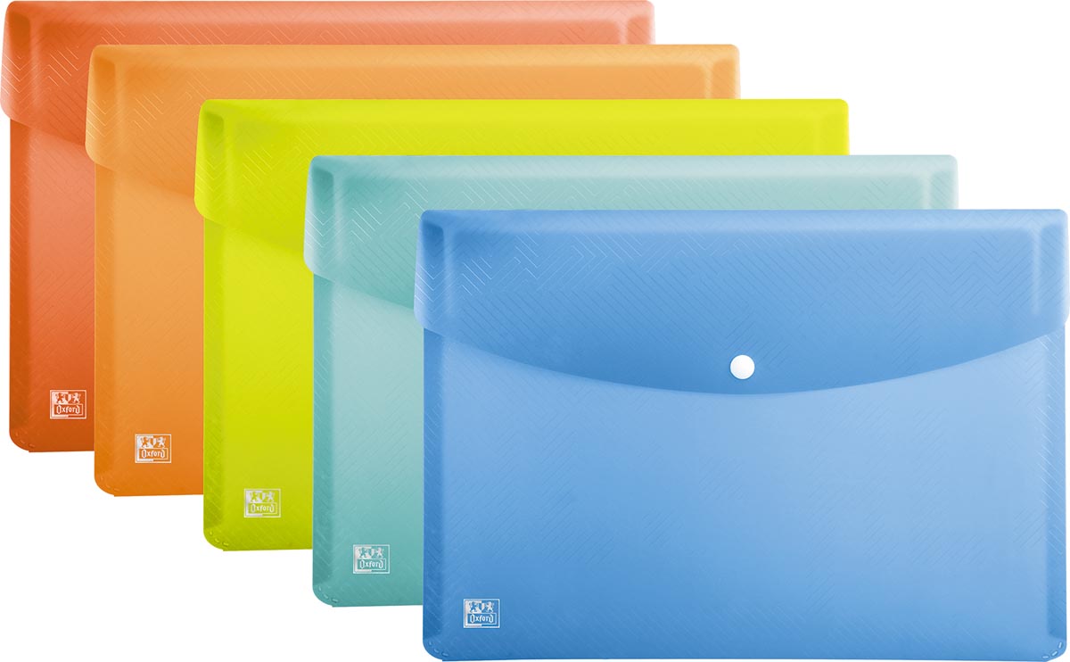 Oxford Urban pochette documents, fermeture à bouton-poussoir, format A5, en PP, couleurs assorties