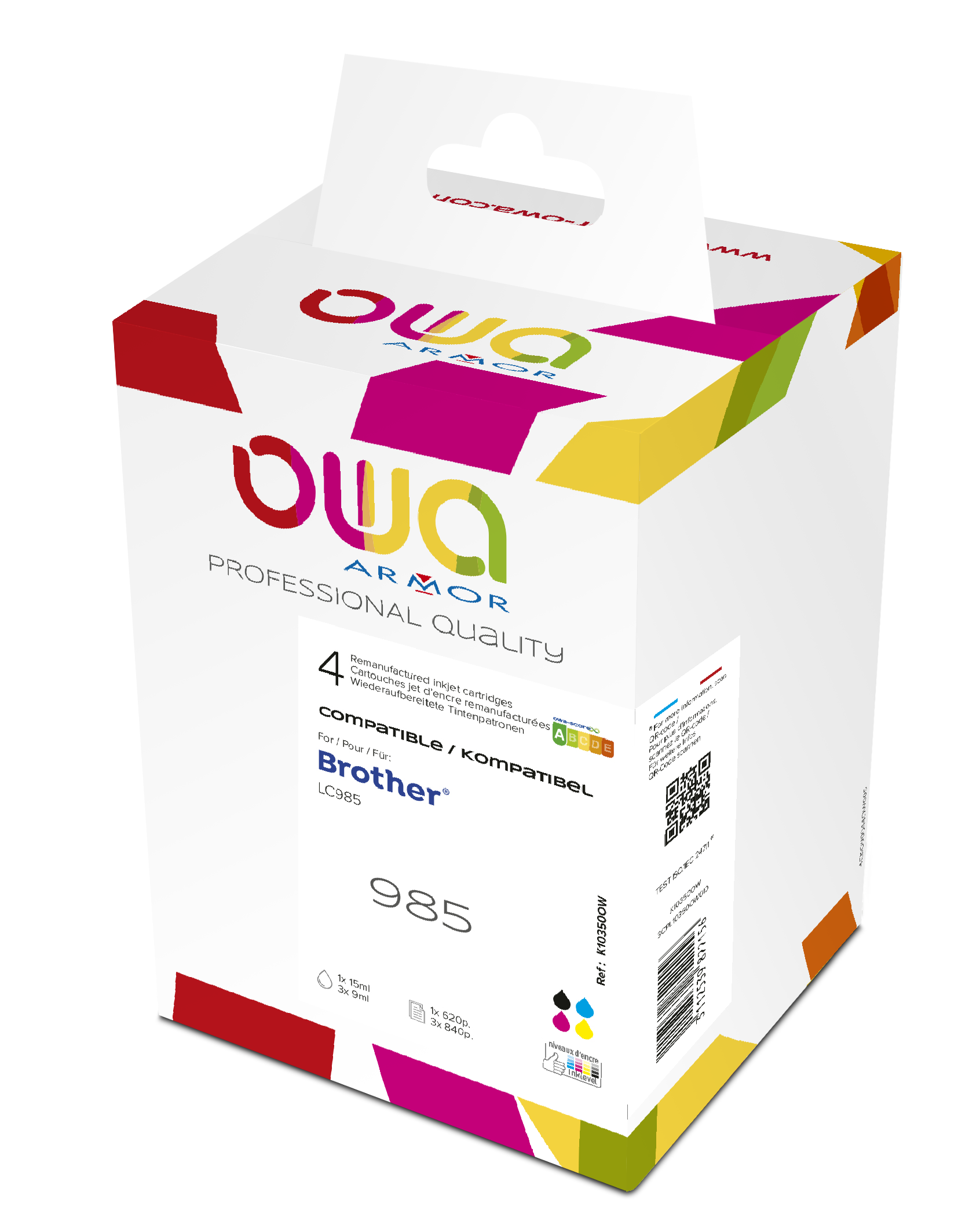 Other cartridges with the same compatibilitiesEN_Pack de 4 cartouches d'encre remanufacturées OWA - standard - Noir Cyan Magenta Jaune - pour BROTHER LC985 B, LC985 C, LC985 M, LC985 Yfrom€25.95 ex VATEN_Cartouche d'encre remanufacturée OWA - standard - Noir - pour BROTHER LC985 Bfrom€7.15 ex VATBrother LC985 Pack of 4 ink cartridges for inkjet printer27 reviews€57.60 ex VATCartridges Brother LC 985 separated colors20 reviewsfrom€12.50 ex VATBlack Brother LC985 cartridge for inkjet printer30 reviewsfrom€23.12 ex VAT