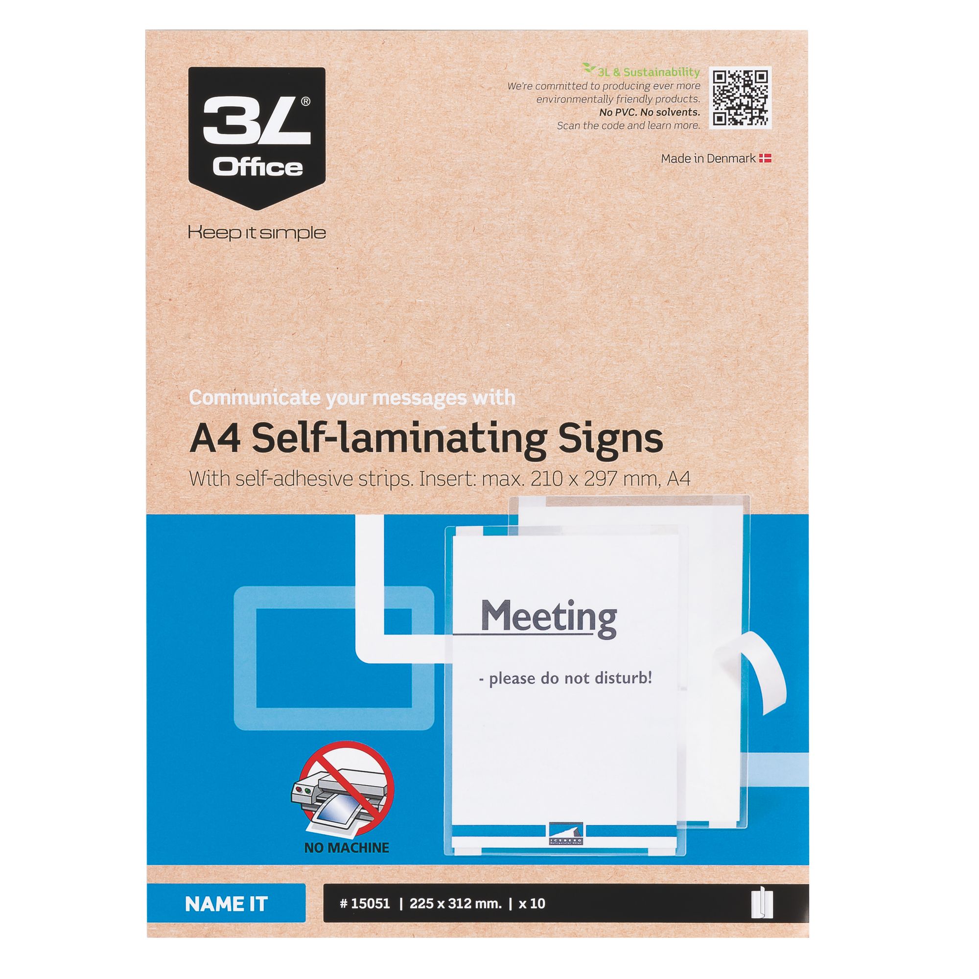 Very easy and fast use without using a machine. Slide the document to one side and apply the adhesive film. You're done! Very resistant, excellent transparency. Thickness 300 microns. Also available with repositionnable glue in the back. In packages of 10.