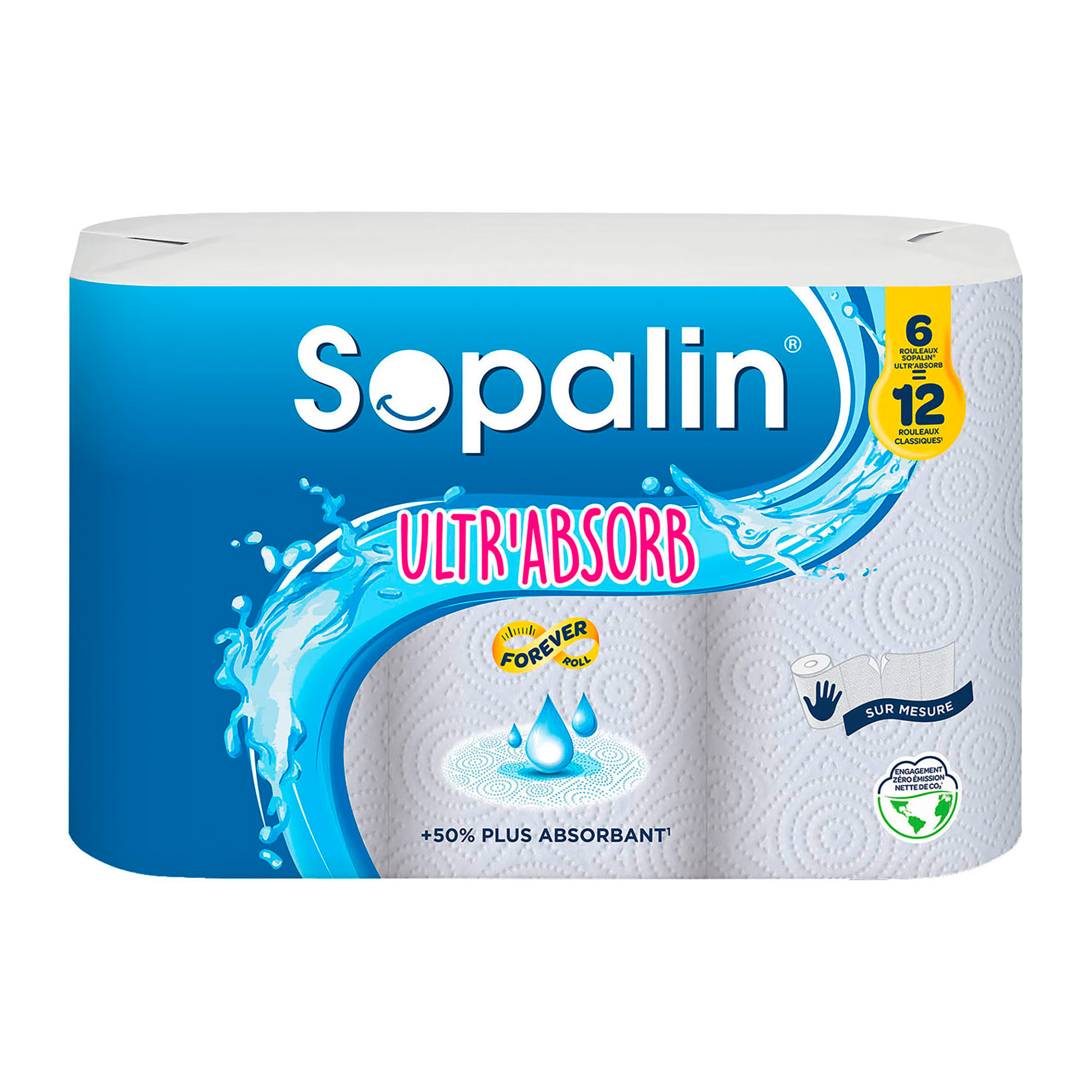 Sopalin Ultr'Absorb is your ideal partner for daily tasks. Maxi, Sopalin Ultr'Absorb rolls help you reduce your paper consumption as they are 2 times longer (1 maxi roll = 2 standard rolls)