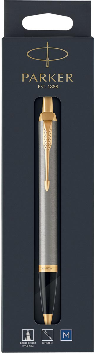 Fiable et hautement professionnel. Partenaire idéal au potentiel illimité, Parker IM est à la fois élégant, brillant et sûr. Doté d'une plume durable en acier inoxydable et de finitions aux couleurs de la marque, ses détails raffinés assurent une expérience d'écriture fiable. Couleur de l'encre: bleu.