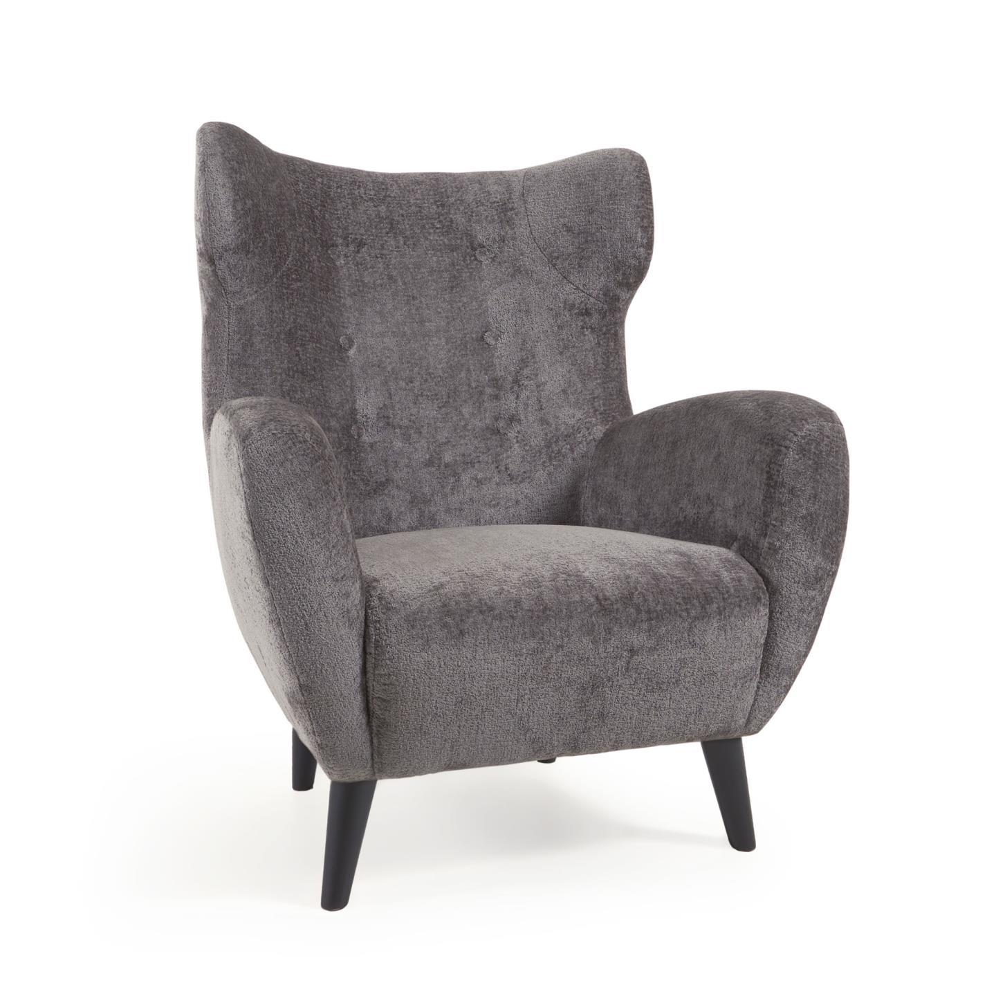 Attention non-conformists! The Patio armchair unites the retro design of a 60's wingback chair with decorative buttons on the quilted style backrest, and solid rubberwood legs. Why settle for good, when you can have the best?- Armchair upholstered in chenille fabric.
