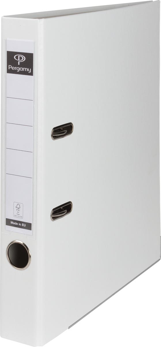 Pergamy classeur, pour ft A4, en carton recouvert de PP, avec bord de protection, dos de 5 cm, blanc