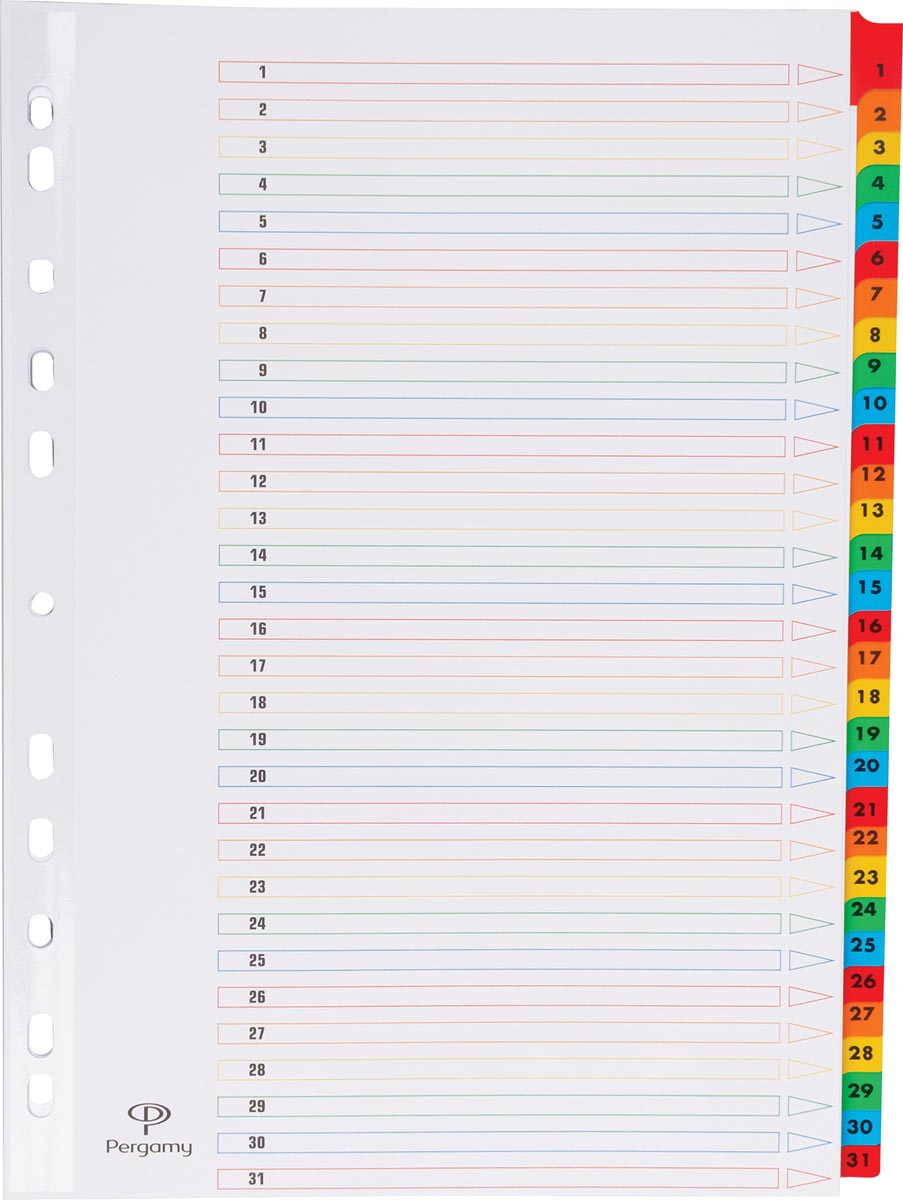 Pergamy intercalaires avec page de garde, ft A4, perforation 11 trous, couleurs assorties, set 1-31