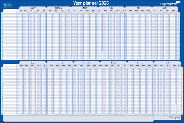 L'utilisation d'un planning annuel est un moyen pratique et visuellement attrayant d'organiser votre emploi du temps, vos événements et vos tâches pour l'année. Accrochez-le à un endroit visible et accessible dans votre maison ou votre bureau. Utilisez des marqueurs ou des stylos de différentes couleurs pour souligner les informations importantes telles que les rendez-vous et les dates butoirs. Les jours fériés sont pré-imprimés. Ce planning annuel est fabriqué à partir de matériaux provenant de forêts bien gérées, certifiées FSC® et d'autres sources contrôlées (FSC C158462). * Le laminage protège le carton de l'usure, ce qui rend le planificateur plus résistant et durable. La surface lisse et inscriptible du carton laminé permet d'écrire et d'effacer facilement avec des marqueurs effaçables à sec. * Les marques peuvent facilement être effacées à l'aide d'un chiffon humide ou d'une brosse. * Planning annuel avec les mois à l'horizontale et les projets à la verticale. * Division en deux semestres séparés l'un de l'autre. * Capacité d'inscription de 30 projets, membres du personnel, évènements ou tâches. * Les week-ends sont indiqués dans une couleur différente. * Espace supplémentaire pour les notes à droite du planning. * Les numéros de semaine sont intégrés dans la grille. * Taille approximative de la grille journalière (Hxl): 7x4,2mm. * Ce produit est conditionné dans un emballage en carton sans plastique. * Planning annuel laminé de 90x60cm. * Texte en anglais. * Ce produit est conditionné dans un emballage en carton et sans plastique.