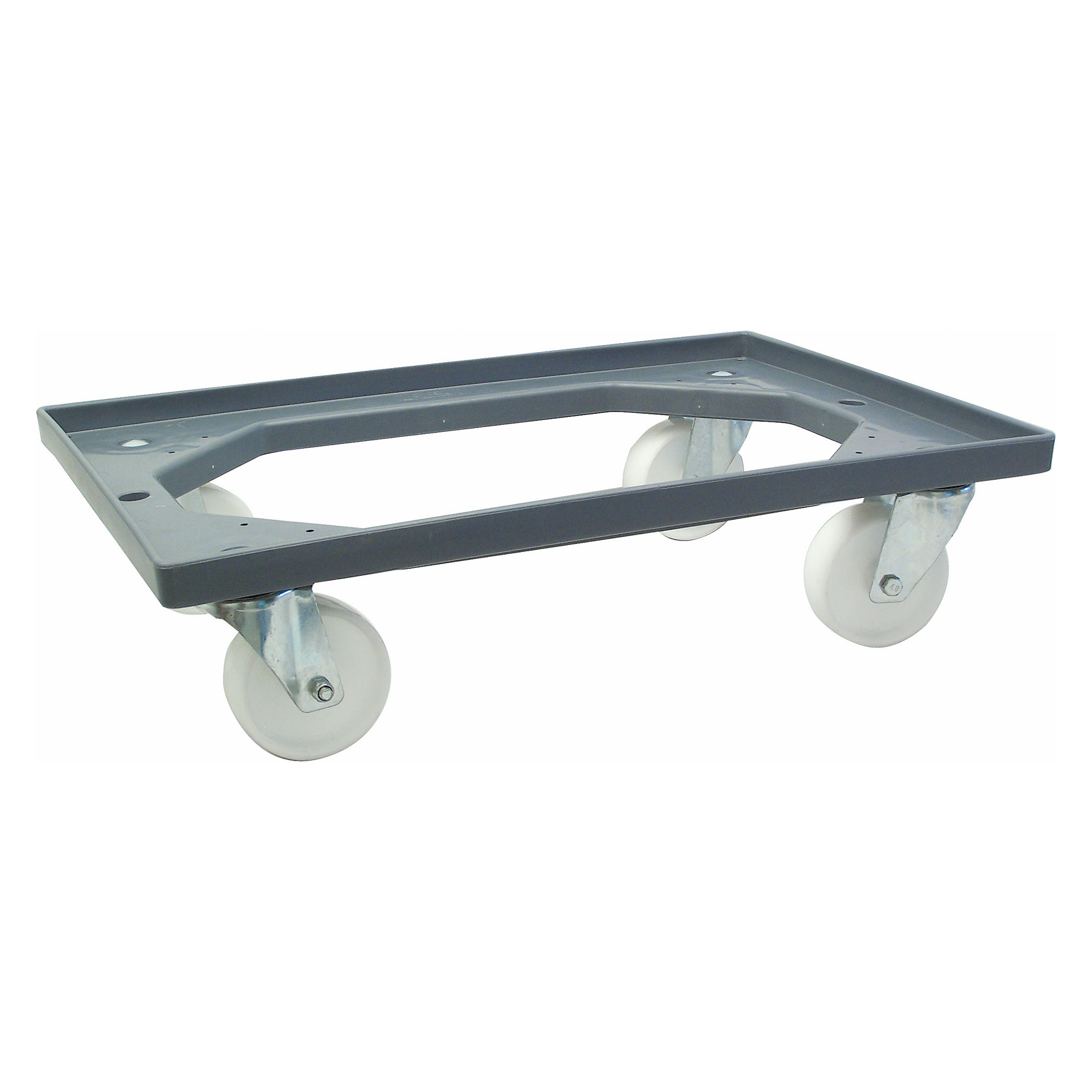 Detailled descriptionPlateforme à roulettes pour bacs de manutention. A assembler. Fabriquée en polypropylène. Equipé de 4 roues Ø 100mm. Charge maximale : 250 kg.Dimensions : H 16 x L 61 x P 41 cm.