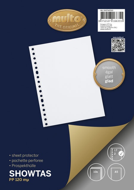 Pochette Multo A5 17 perforations PP 0,14mm lisse 10 pièces