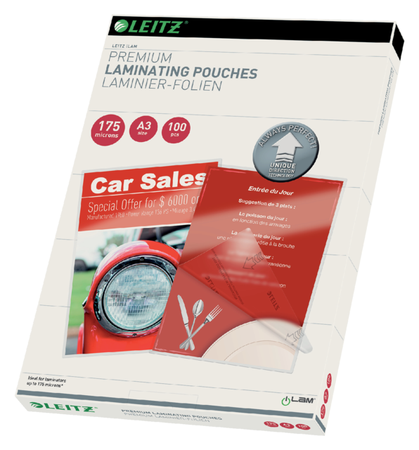 Pochette de plastification Leitz iLAM A3 2x175 microns 100 pièces