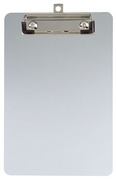 Detailled descriptionPorte-bloc A5 en position portrait en aluminium anodisé avec rebords arrondis Pince plate avec prise A accrocher grâce à son œillet de suspension Capacité 8mm Epaisseur de la plaque de 0,12cm Recyclable.
