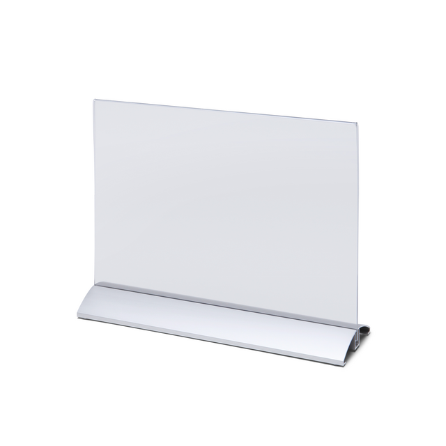 Présentez vos menus ou promotions avec élégance grâce au porte-carte menu IEZZY A4 paysage avec base en aluminium. Ce porte-menus haut de gamme est doté d'une base en aluminium anodisé argent et d'un support en acrylique transparent, mettant ainsi instantanément en valeur votre message. Le format A4 paysage est idéal pour les menus larges ou les supports promotionnels et s'intègre facilement sur les tables ou les comptoirs. Son design épuré et ses matériaux résistants lui confèrent une allure professionnelle et raffinée. Changez facilement le contenu en faisant glisser le document dans le support en acrylique – idéal pour les mises à jour d'informations dans le secteur de l'hôtellerie-restauration ou du commerce de détail.Caractéristiques :* Type : Porte-menus.* Format : A4 paysage.* Matériau de la base : Aluminium anodisé.* Matériau du support : Acrylique.* Couleur de la base : Argent.* Utilisation : Convient pour les menus, les promotions ou les documents d'information.* Insertion du document : Facile à coulisser.