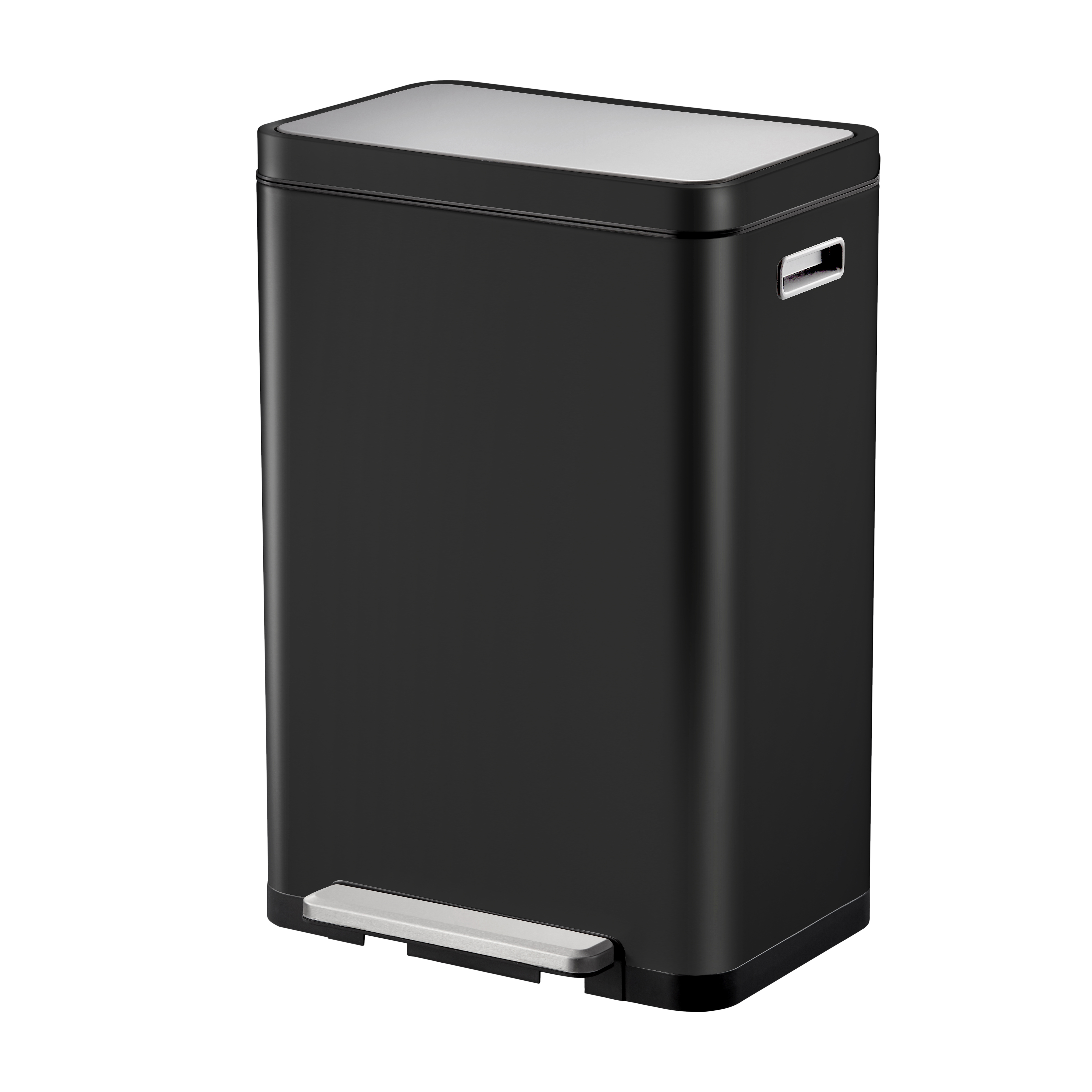 Poubelle élégante rectangulaire équipée d'une pédale extra-large, d'un liner en matière synthétique, d'un couvercle à fermeture silencieuse et de la fonction 'stay-open'. Cette poubelle en Inox brossé a une finition anti-traces de doigts et un revêtement anti-bactérien nano argent. L'anneau de fermeture en silicone garantit que les mauvaises odeurs sont effectivement retenues dans la poubelle. Le couvercle est équipé d'un filtre à odeurs intégré. Le bord rabattable garde la poubelle ouverte, afin de faciliter le changement du sac poubelle et l'enlèvement du liner.