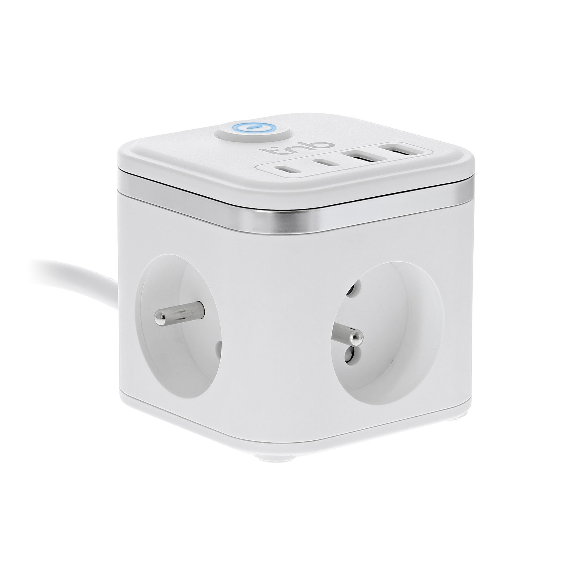 Recharge all your devices with a single practical and stylish power strip. This power strip with a modern design integrates perfectly into all environments, whether at home or in the office. Thanks to its 3 grounded power outlets (16A), it allows you to connect multiple devices simultaneously in complete safety. It also features 4 intelligent USB ports to meet all your charging needs.