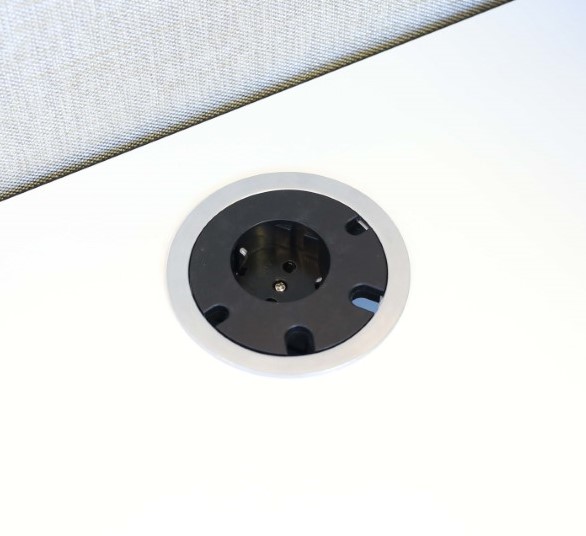 - Une prise d’alimentation secteur directement sur le bureau avec 4 trous passe-câbles.