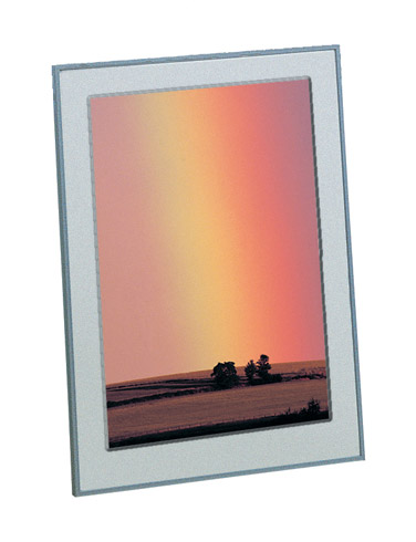 Hardened UV-treated organic glass. With one shiny and one non-reflective side. 19 mm thick. Attaches horizontally or vertically Aluminium 5 colours: black, red, blue, silver or white Weight: up to 3.6 kg for the largest size. 21 cm x 29.7 cm 30 cm x 40 cm 40 cm x 50 cm 50 cm x 70 cm 60 cm x 80 cm 70 cm x 100 cm