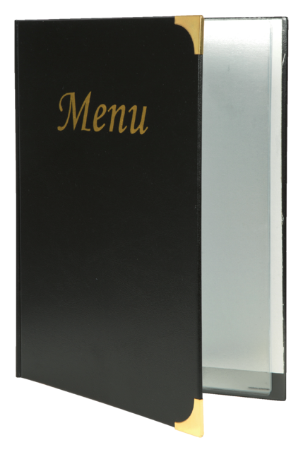 Detailled description* Divers protège-menus à utiliser dans la restauration. * Protège-menus de style classique avec inscriptions en lettres dorées. * Finition avec coins renforcés. * Disponible en différents formats.