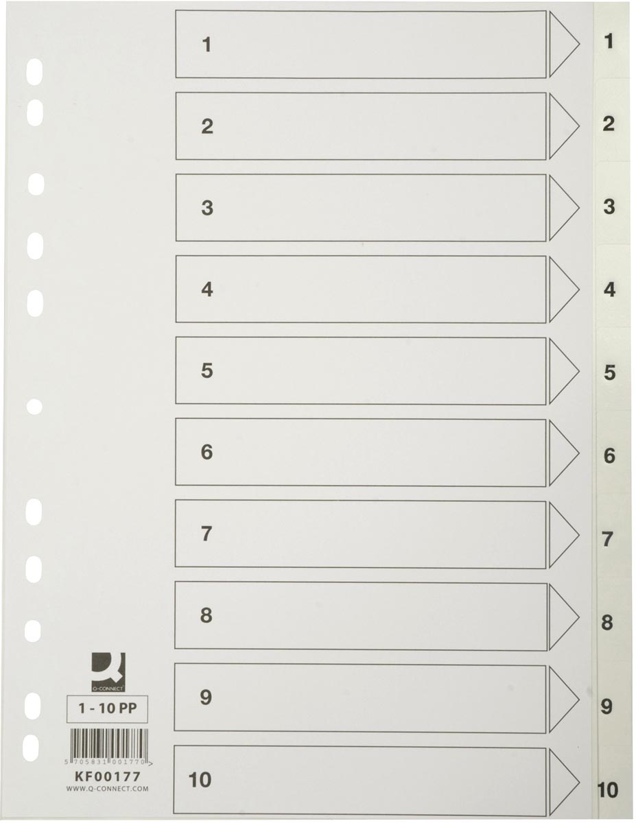 Q-CONNECT intercalaires, A4, PP, 11 trous, avec page de garde, jeu de 1-10, blanc