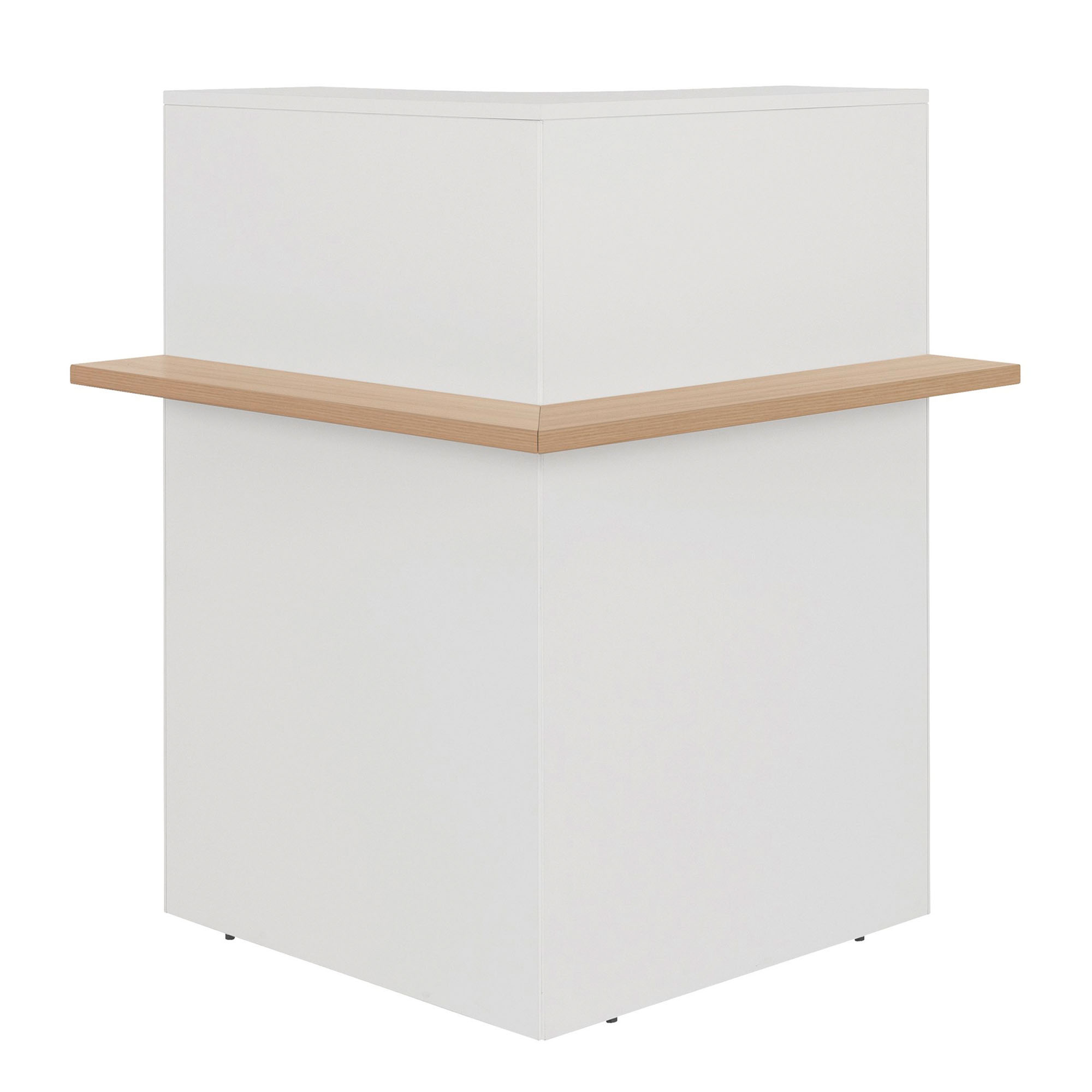 Many configurations are possible for this reception desk range: - Straight compositions thanks to the straight modules L 80 and L 120 cm with integrated LED, as well as storage accessories and intermediate and end reception desk tops