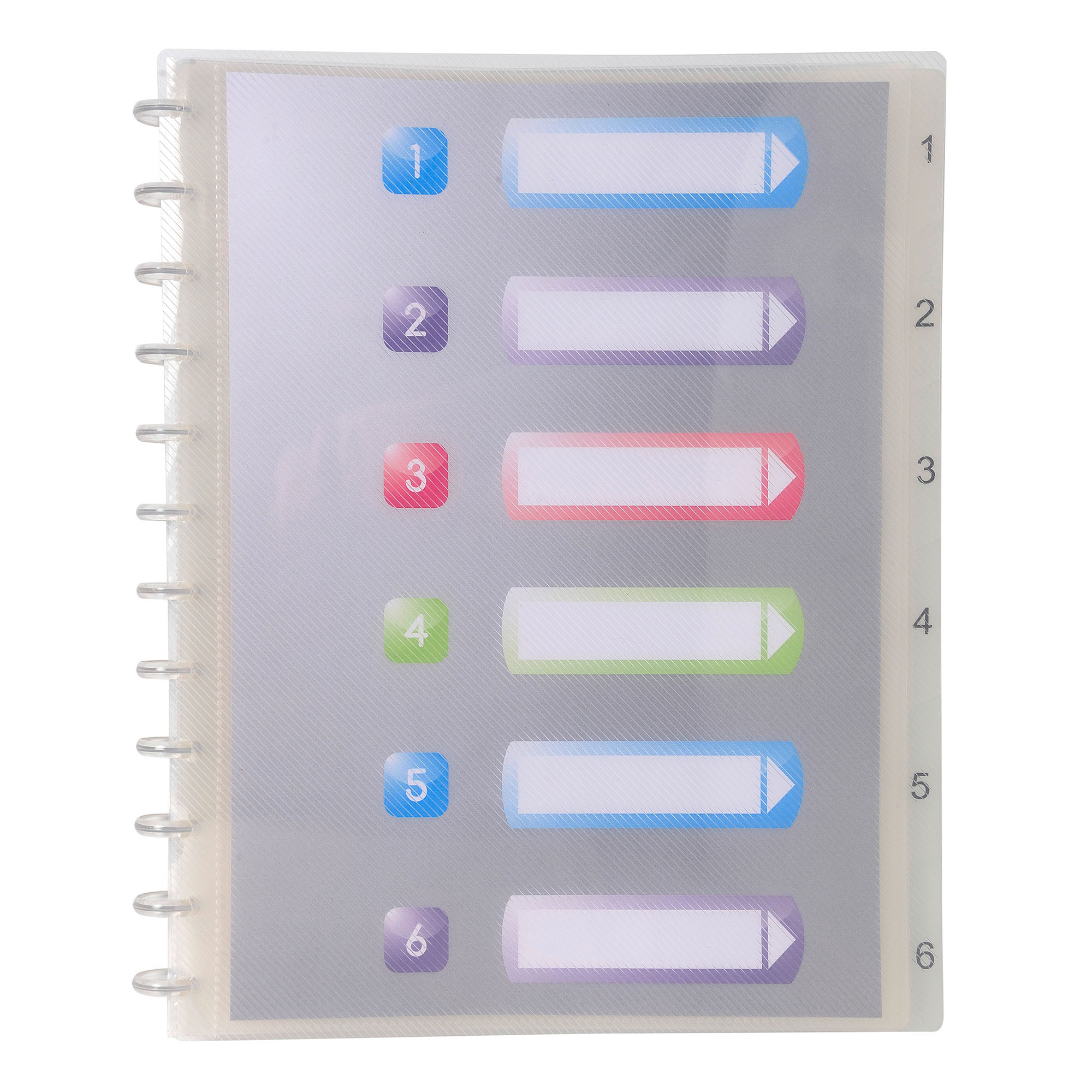 One of the major benefits of this ring binder is its detachable pockets, which facilitate the organization and classification of your documents. In addition, the numbered translucent rigid dividers from 1 to 6 allow you to quickly and easily identify the contents of the compartments.
