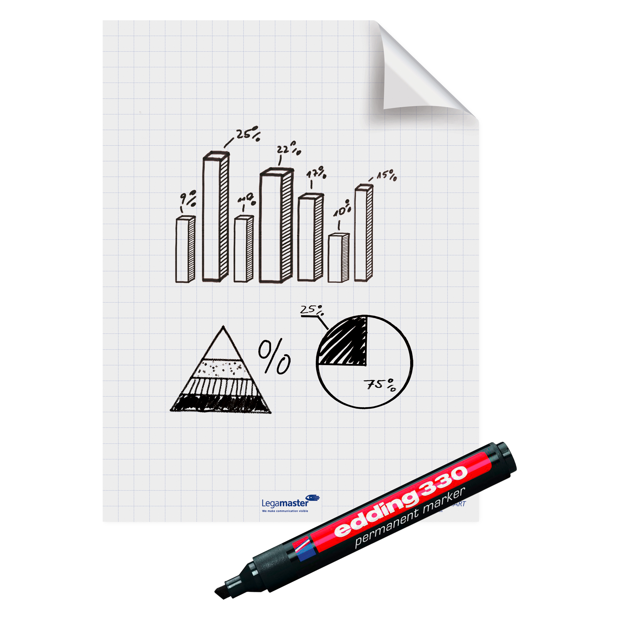 Electrostatic writing sheets ready to use allowing to turn any workshop, meeting, presentation or brainstorming session into a unique collaborative experience. Quadrilled electrostatic sheets substituting for the use of an easel. Adhere as if by magic on any flat surface (wood, concrete, glass, wallpaper). Easy to reposition and remove after use. Roll width 60 cm Fully quadrilled sheet (easel effect, non-erasable).