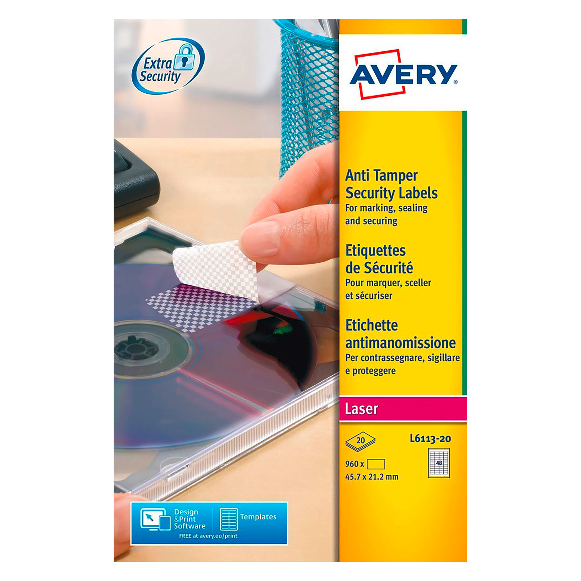 Ideal for identifying your computer equipment or high-value items, these Avery security labels are tamper-proof because if the label is removed, it leaves an unpeelable checkerboard pattern on the surface to highlight any theft attempts.