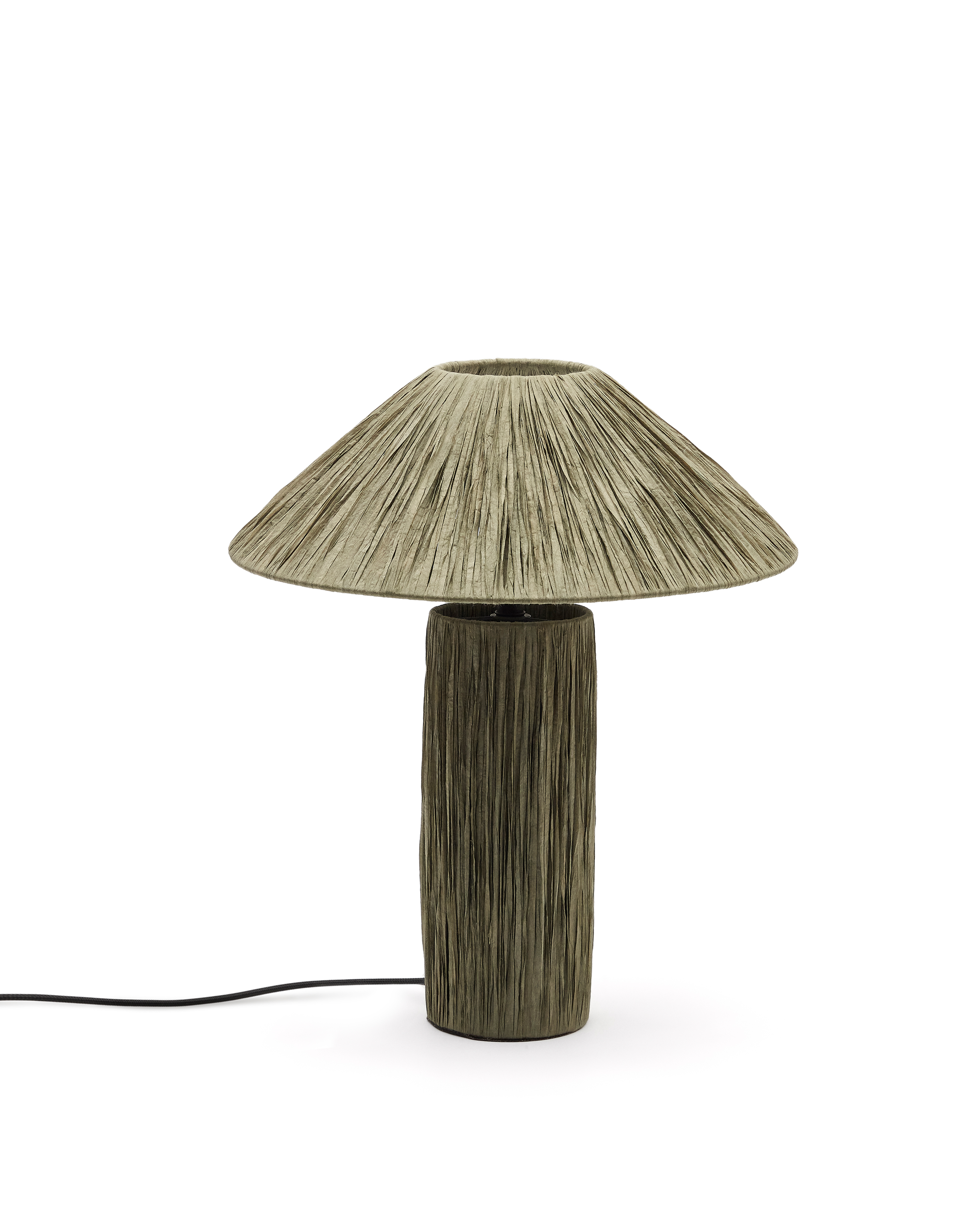 Lamp made from handwoven raffia, a 100% natural fibre with its own unique tones and patterns.