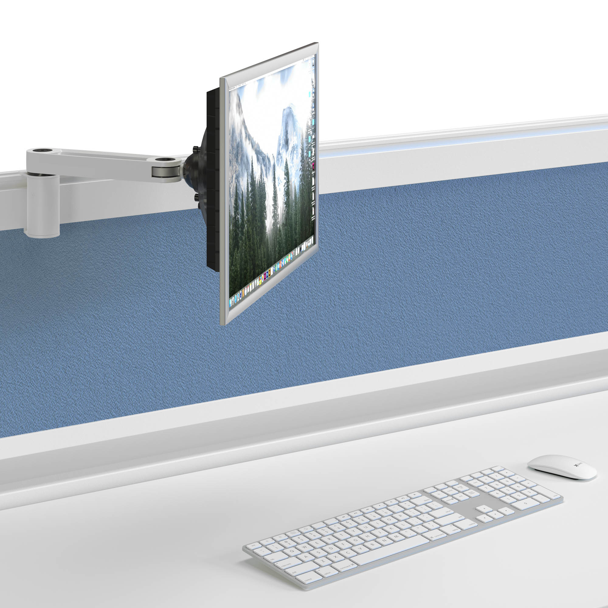 Fabriqué principalement en aluminium et zamak, ce bras support d’écran peut soutenir un moniteur de 12 kg. Ce modèle est conforme à la norme VESA, avec une configuration de trous en carré de 75 x 75 et 100 x 100 mm. La hauteur de l'écran est réglable sur une amplitude de15 cm. Il se fixe facilement à votre panneau écran avec cadre ECLA à l’aide d’une pince-crochet.