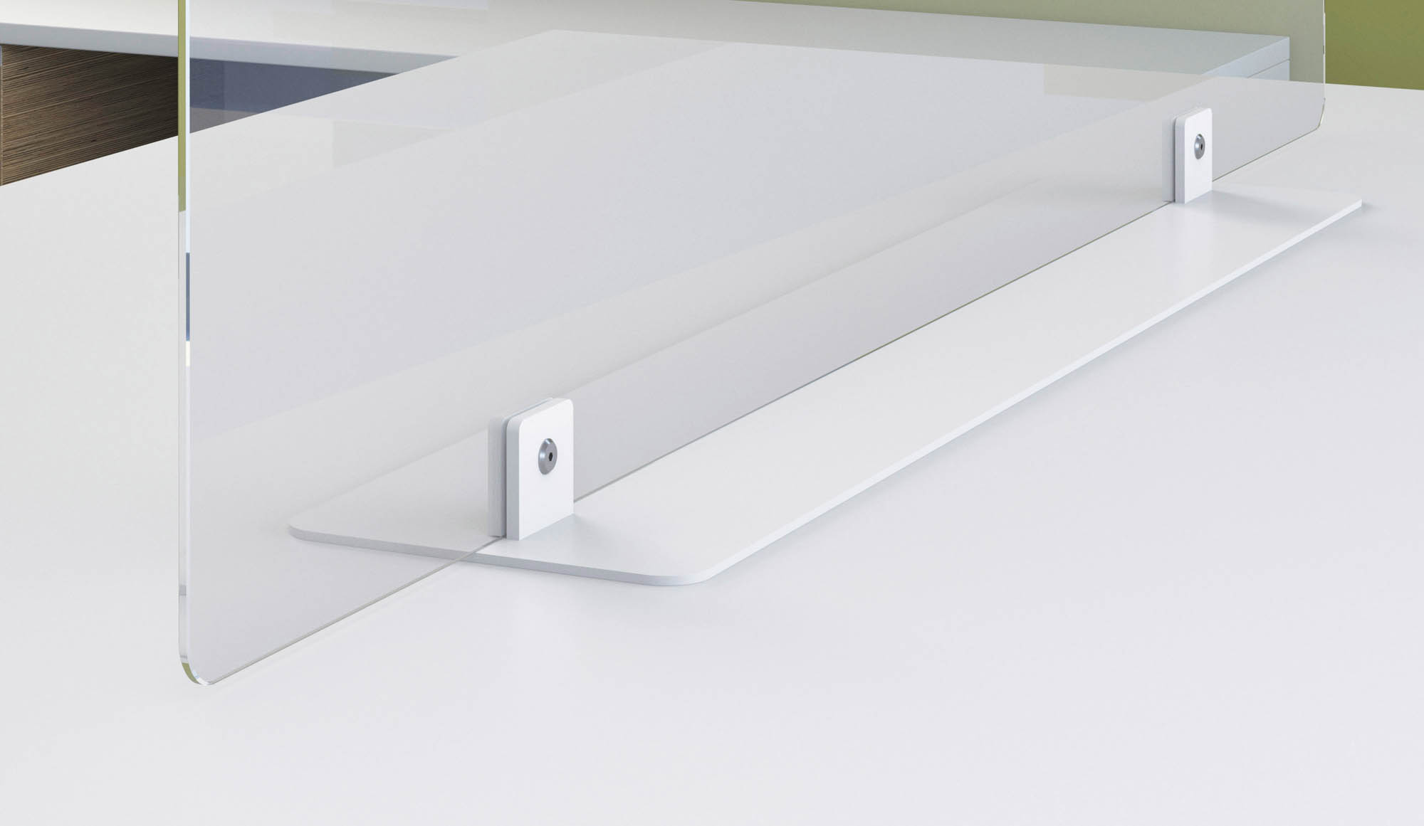 The B-Zen tempered glass partition screen reduces the risks associated with splashes between coworkers while allowing them to see and exchange with each other.