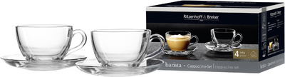 Detailled descriptionEn verre transparent, lavable en machine, tasse de 220 ml, diamètre de la soucoupe: 140 mm contenu: 2 tasses + 2 soucoupes