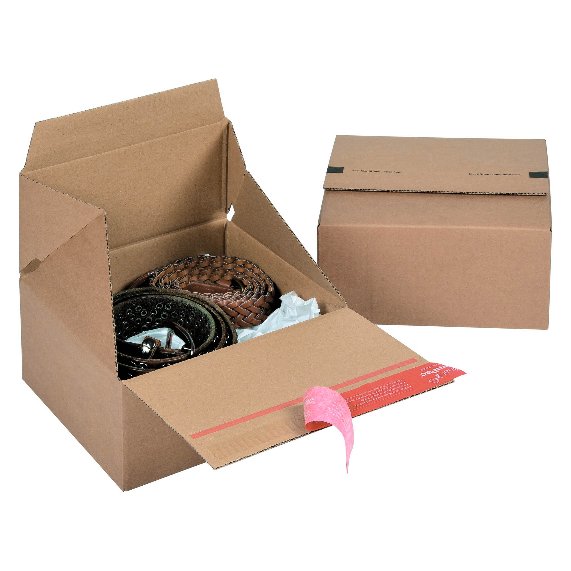 Made of brown kraft cardboard, it is ultra rigid and ultra resistant. Its lid automatically folds in a "Z" shape for perfect content protection.
