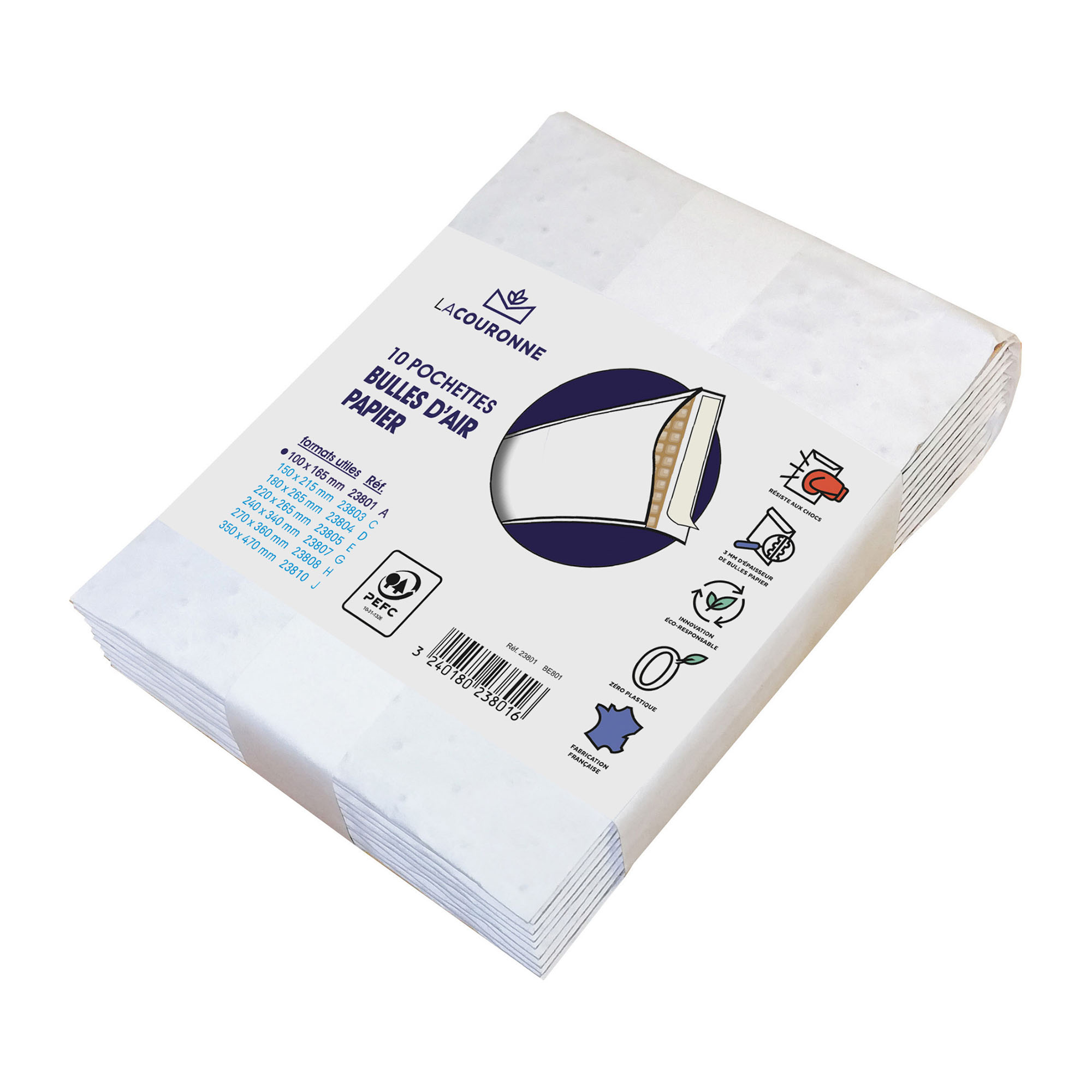 You are looking for an alternative to traditional bubble wrap and foam padded envelopes? Here is a 100% paper solution that offers a superior advantage in terms of usage, protection for all your shipments, even the most fragile ones, ease of insertion, and even printing. With zero plastic, the paper bubble envelope is made from white or brown double-layer kraft paper and 3 mm embossed kraft that resists perforation, tearing, and flat compression. Air is trapped between two sheets of paper to create a cushion that protects and secures your shipments.