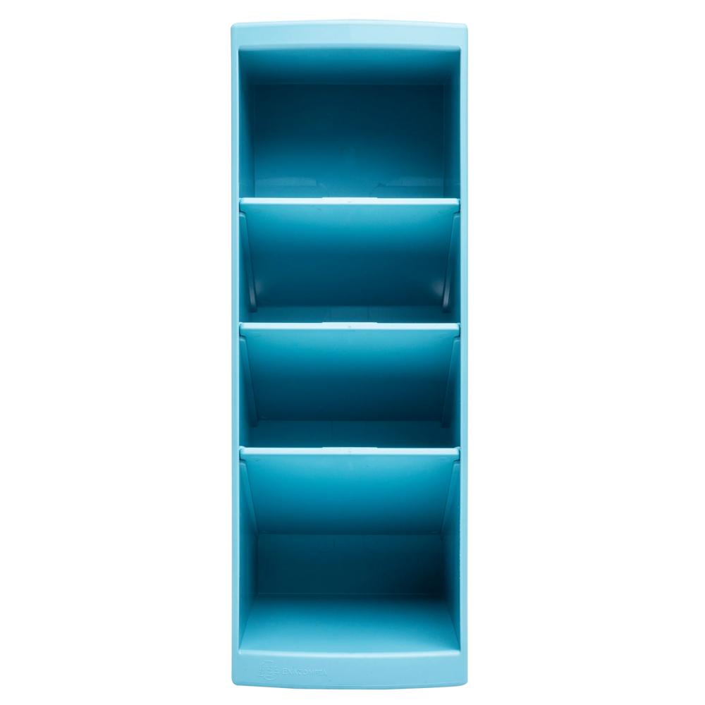 Pop&Co... it's sparkling and it's eco-friendly: a colourful and energising range that will give your work space the zesty side it was missing, allowing more creativity with cyan and lime and concentration with lilac. Respectful of the environment, these products are made from recycled household plastic waste and are Blue Angel certified. With its simple, sleek and compact design it is 23 cm high, 8 cm wide and 11 cm deep, it can easily fit in a corner of a desk or shelf. The product is totally suitable for the workplace as well as the Home Office. Its 4 compartments of different depths, from 8 to 11cm, allow you to use it as a pencil holder, store your highlighters, scissors, sticky notes, telephone or various small accessories. Usable upright or lying down and juxtaposable, you can clip several products together using the clips provided. This will allow you to optimise your organisation and increase your storage capacity. The Multi tower is a versatile, adaptable, ecological and smart storage accessory. Made from recycled plastic from household waste, it is Blue Angel certified. 25 year warranty.
