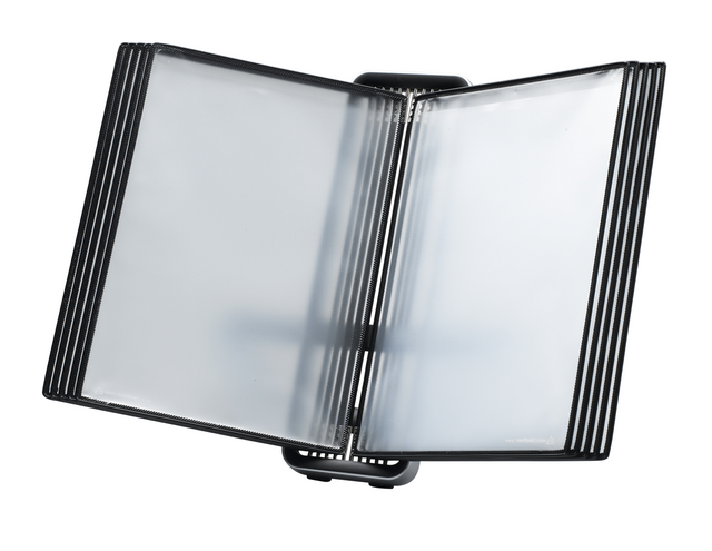 * VEO présente, protège et organise tous vos documents importants. C'est du temps gagné pour plus d'efficacité au quotidien. * 10 poches pivotantes PP A4 inclues. * Un élément pupitre peut contenir 1 à 2 cadres pour 10 à 20 poches. * Pour un plus grand nombre de poches, les cadres peuvent être utilisés pour relier les éléments du bureau. * Montage immédiat, en un clic, sans outils. * Une combinaison de l'esthétique et des matériaux de haute qualité. * Ultra stable grâce aux patins antidérapants. * Extensible à l'infini en reliant simplement les éléments entre eux. * Base : alliage d'aluminium laqué en noir avec finition « soft grain ». * Cadre : extérieur en aluminium brossé argenté avec unité interne en ABS laqué avec finition noire « soft touch ». * Support mural : ABS noir.