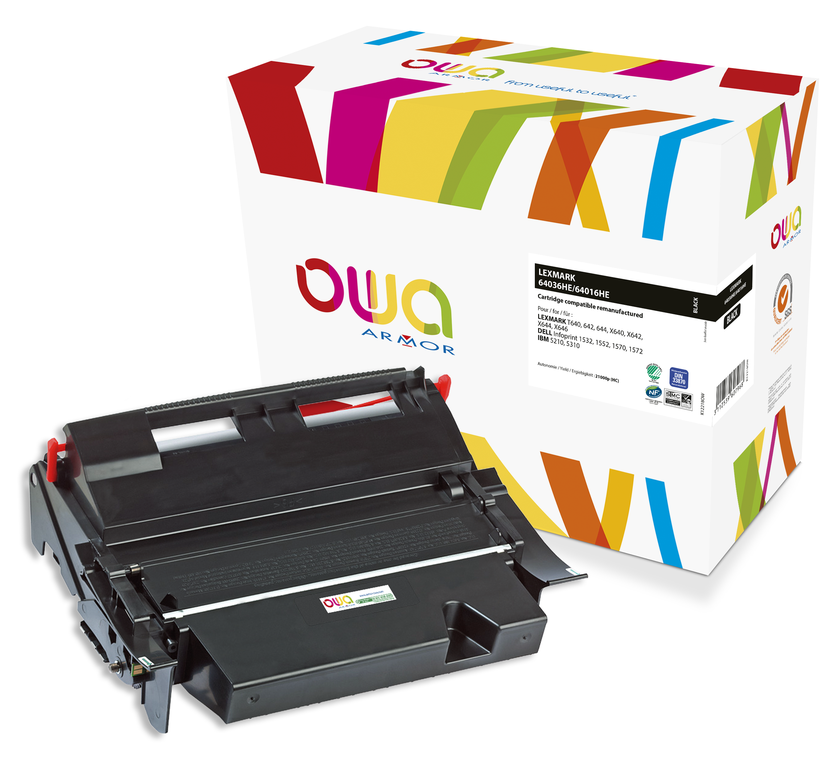 Other cartridges with the same compatibilitiesEN_Toner remanufacturé OWA - haute capacité - Noir - pour LEXMARK 64036HE, 64016HE, DELL 593-10130, IBM 75P6960from€195 ex VAT