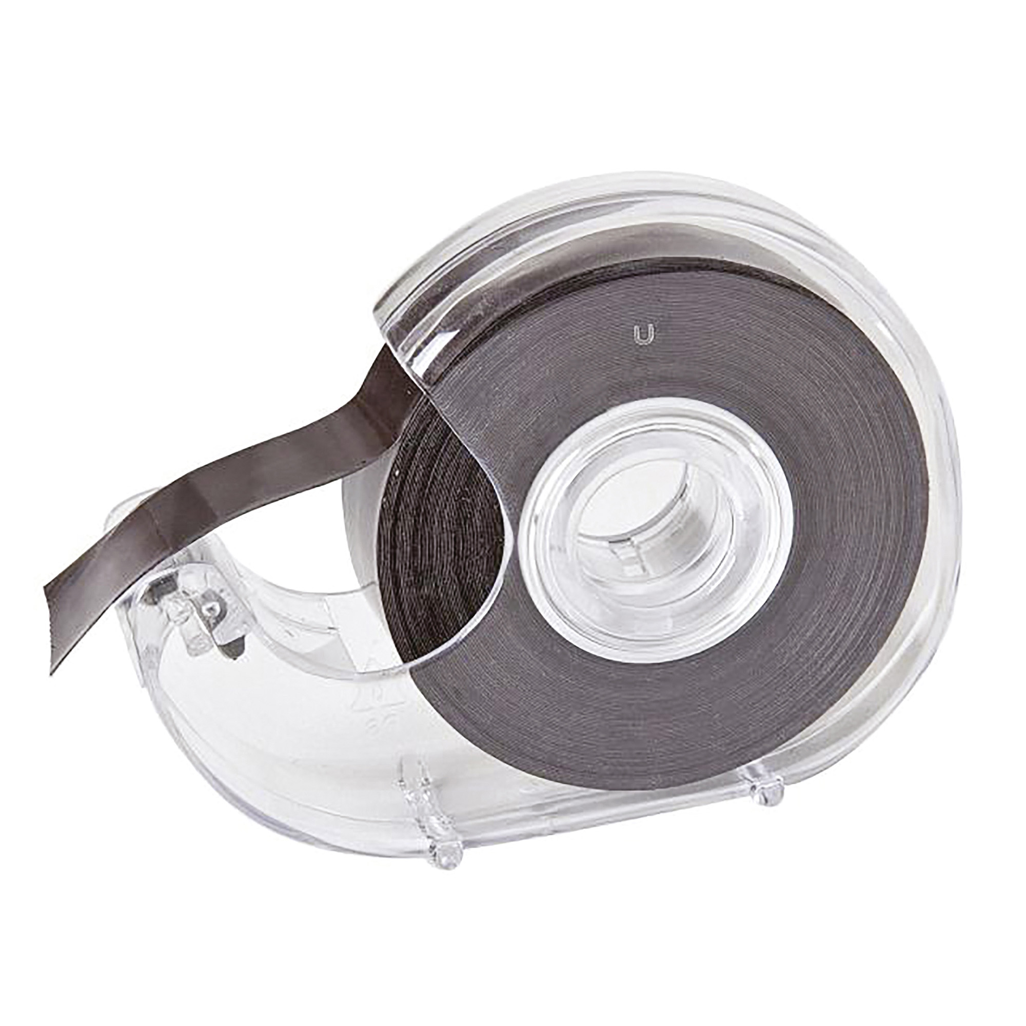Detailled descriptionDouble-sided black band, magnetic and adhesive.Very convenient to cut to the desired size thanks to its dispenser. The magnetic side has a force of 11 g/cm². 7 meters in length by 19 mm in width, you can use it for a long time