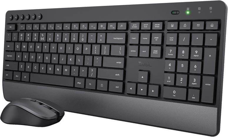 Clavier grand format avec disposition classique des touches pour une saisie confortable Avec repose-poignet intégré Souris sans fil compacte à sensibilité réglable Boutons silencieux Un seul microrécepteur USB pour les 2 appareils Le clavier fonctionne sur 2 piles AA, la souris fonctionne sur 1 pile AA (incluses) Matériaux recyclés: 85 % plastique recyclé