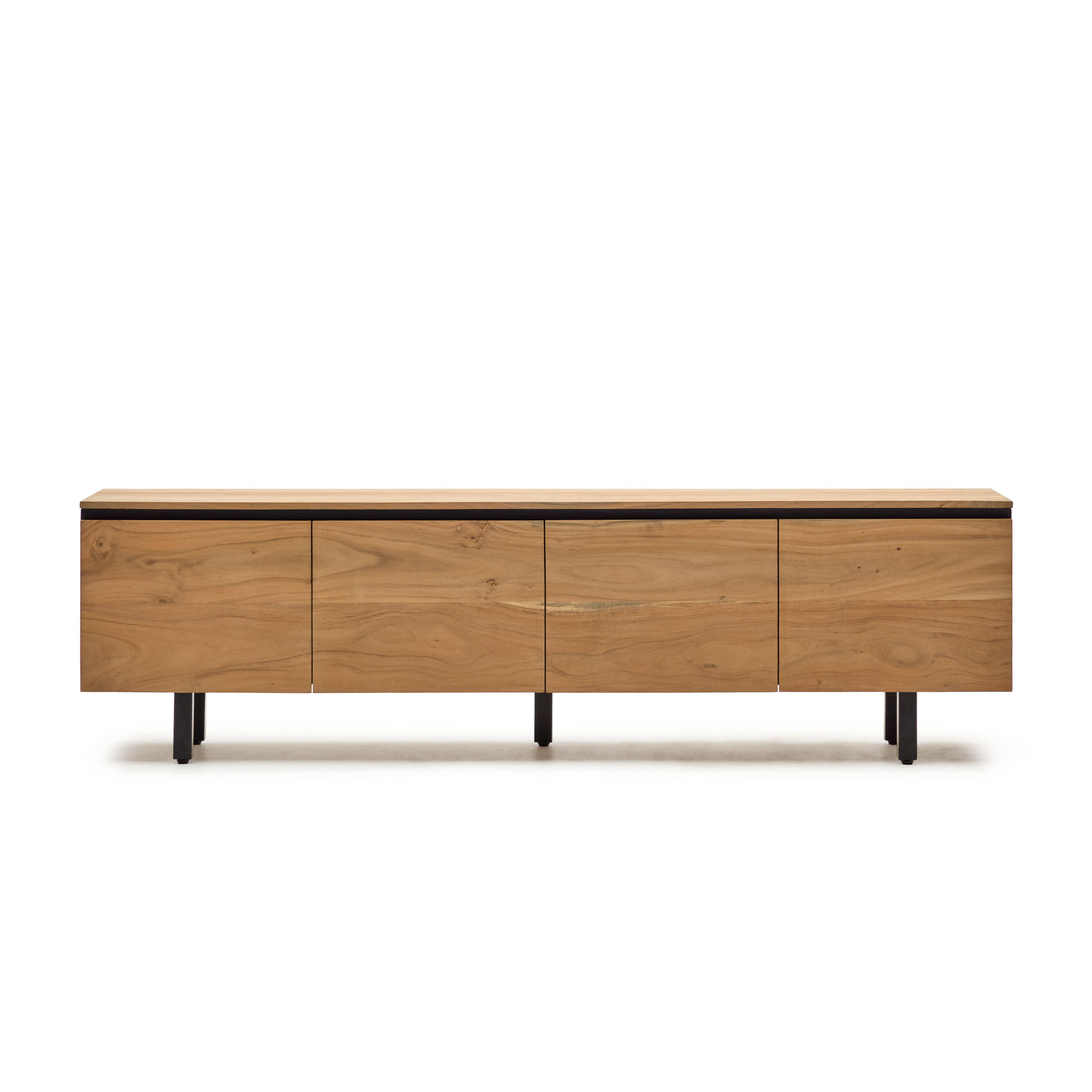 The solid acacia wood Uxue collection is a Kave Home team design, that stands out due to the black decorative line that crosses the entire piece. Each piece is one-of-a-kind, thanks to the unique tones and grain of the wood.- 4-door TV stand