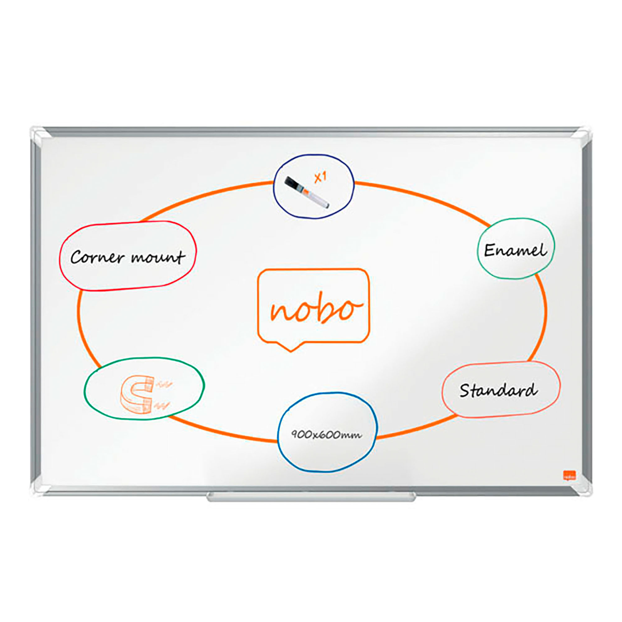 The Nobo whiteboard is ideal for intensive use. Its enameled surface allows you to effortlessly erase even the slightest marks and thus keep a fresh appearance over time. The whiteboard also allows you to display your documents with its magnetic surface. Store all your accessories with its large integrated tray.