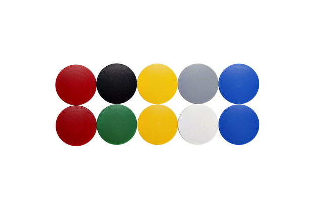 * Un aimant très avantageux. * Design moderne : côté supérieur délicatement structuré et bombé avec sur les côtés des rainures verticales. * Agréable : avec bords fins pour faciliter la prise. * Gain de place : emballé dans une boîte pourvu d’une fenêtre pour visualiser les couleurs. * Stable: le boîtier est en plastique incassable. * Le dessous de l’aimant est laqué assurant une bonne protection des surfaces utilisées pour la fixation. * Force d’adhérence: 2,5kg. * Couleur : assorti.