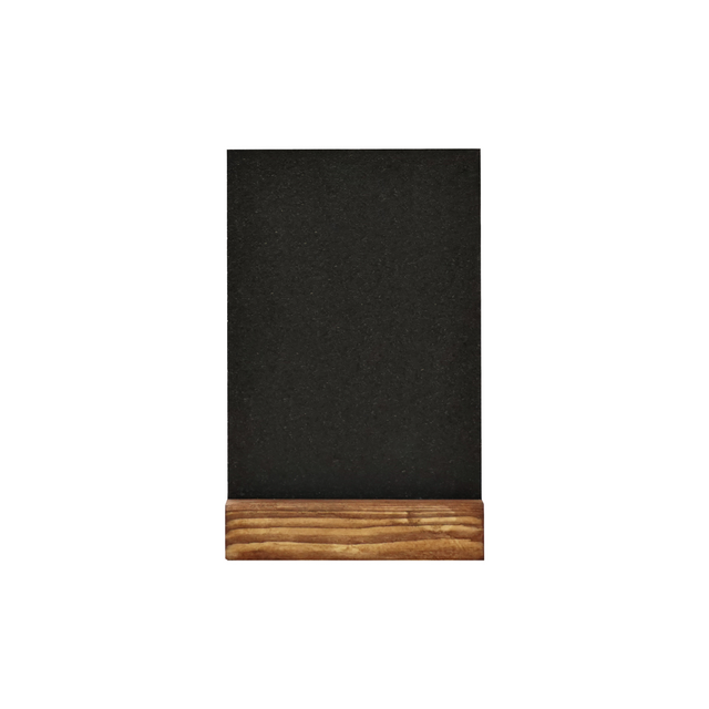 * Ardoise de table, avec un socle en pin, finition natuelle. * Format A6, position portrait. * Convient pour les marqueurs craie à base d'eau (pas à la craie pour tableau noir). * Facile à nettoyer. * Visibilité maximale grâce à la présentation double face.